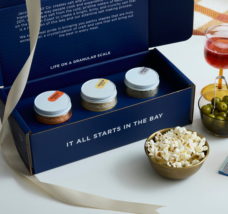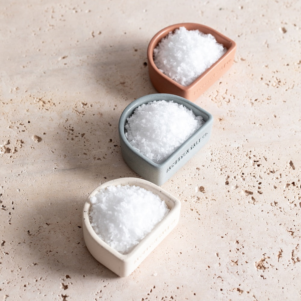 Designed in collaboration with Portland-based Pigeon Toe Ceramics, these custom handcrafted salt cellars are available in three coastal-inspired colorways.